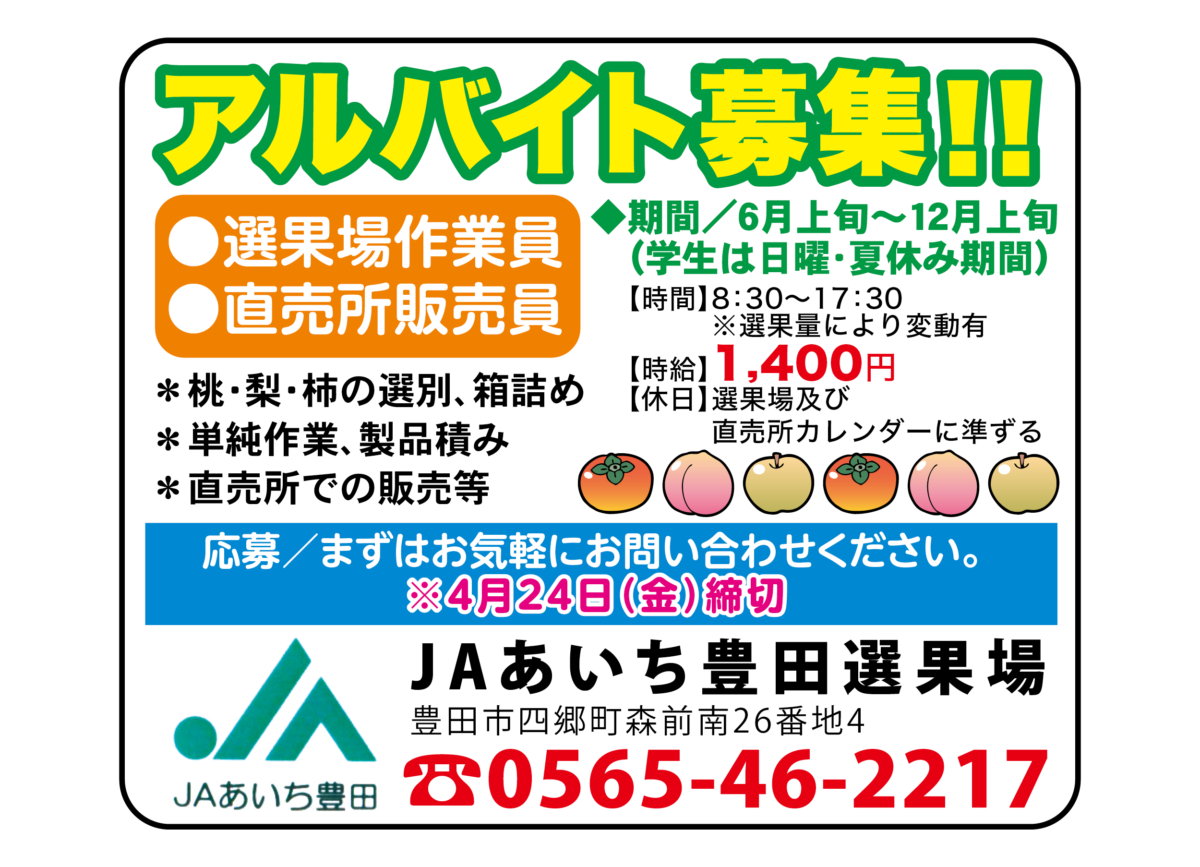【アルバイト募集】選果場作業員・直売所販売員